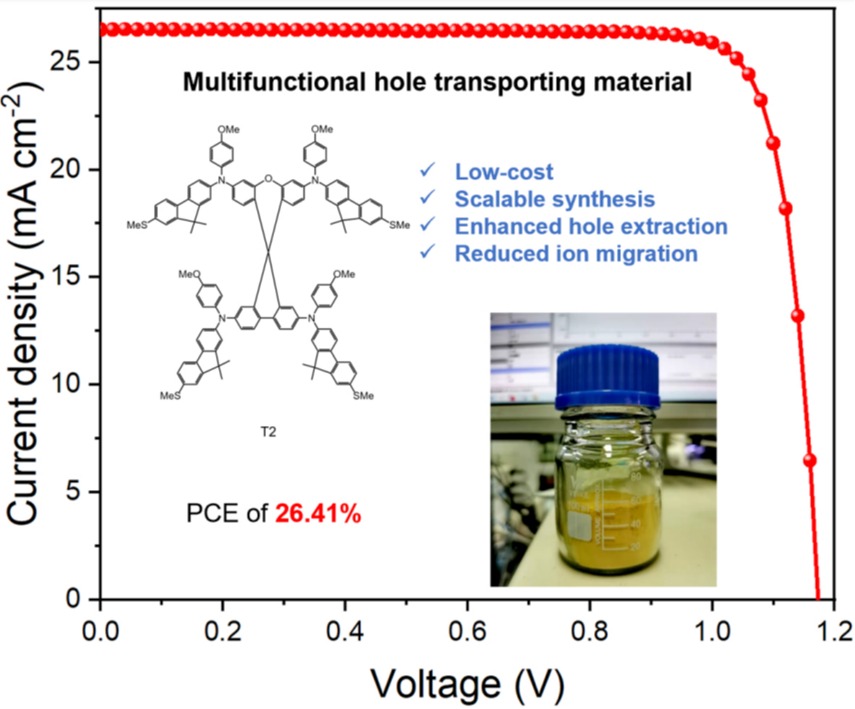 High漫画 新型电力系统研究中心、电机系易陈谊研究员团队通过开发新的空穴传输材料结合真空蒸镀钙钛矿薄膜实现了26.41%的钙钛矿太阳能电池世界最高效率纪录。在光伏技术领域,钙钛矿太阳能电池(PSCs)以其突出的能量转换效率(PCE)和低成本而受到广泛关注。空穴传输材料(HTM)对于PSCs的光电性能和长期稳定性至关重要,其主要作用是提取光生空穴并阻止电子回传,从而抑制电荷复合,同时还可以作为中间层阻挡金属....