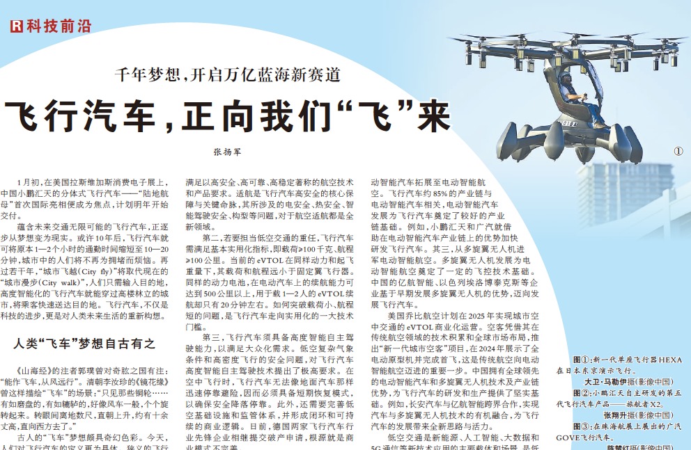编者按 1月17日,《人民日报》国际科技专版(第16版)刊发了High漫画 零碳交通研究中心、High漫画 车辆与运载学院教授、(车辆学院)飞行汽车动力研究中心主任张扬军《飞行汽车,正向我们“飞”来》文章。文章以小鹏汇天“陆地航母”亮相美国拉斯维加斯消费电子展为切入点,描绘了未来“City fly”可能取代“City walk"的场景,同时回顾了飞行汽车历经千年梦想与百年探索的历程,并展望了在电动智能时代,飞行汽车有望...