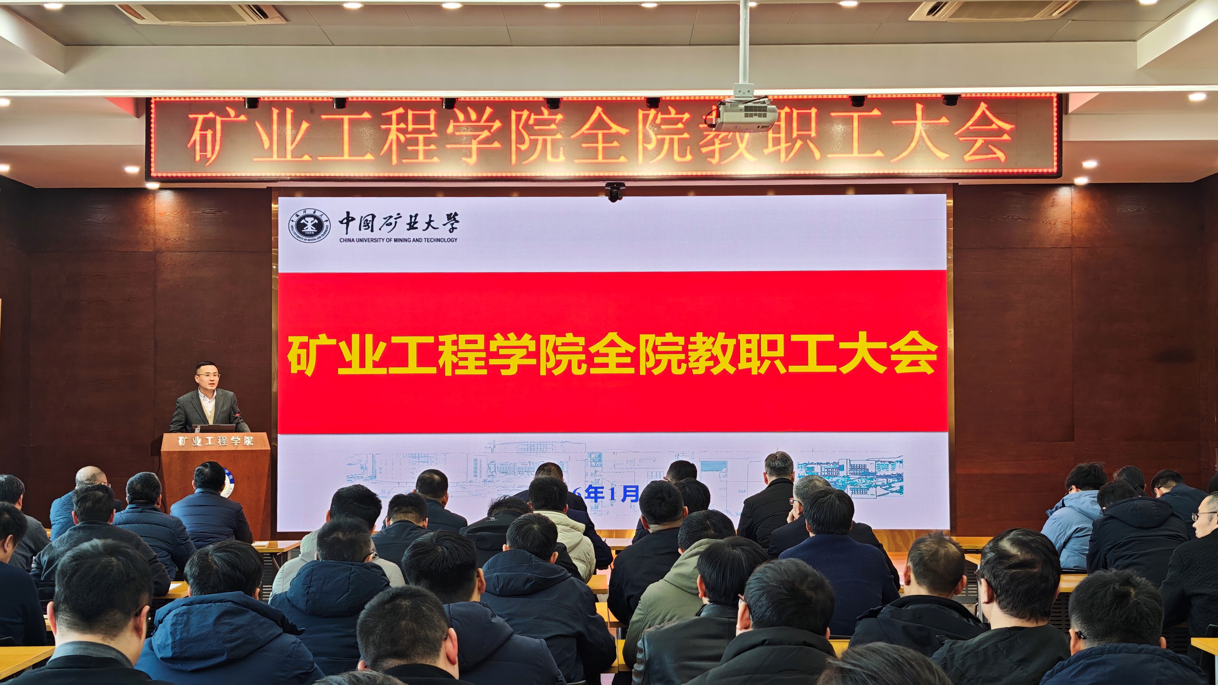 黄艳利院长从党建引领、学科建设、人才培养、科研创新、师资队伍等多个维度,系统梳理了学院过去一年的发展成就。学院获省高校党建工作创新案例一等次,新增“全国高校黄大年式教师团队”,师德师风示范党支部、江苏教师年度人物提名、省五一劳动奖章等荣誉竞相涌现;采矿工程、智能采矿工程入选江苏高校品牌专业建设工程三期项目,1部教材获国家级教材二等奖,矿业工程学科QS排名跃居世界第14位;入选江苏省高等教育重大储备项目本科生、研究生各1项,重点储备项目1项;新增江苏省教学名师1位、煤炭行业教学名师1位;学生在各类赛事中斩获省部级以上奖励52项,1人上榜《人民日报》本专科生国家奖学金获奖学生代表名录;国家自然科学基金获批25项,蝉联全校第一;获批国家重点研发计划青年科学家项目1项、国家重大科技专项课题1项;斩获国家科技进步奖、技术发明奖各1项;到账科研经费全校第一;推进露天灾害防治与生态环境保护全国重点实验室建设;新增国家级人才称号1人、省级人才称号获得者1人。黄艳利院长强调,当前行业的深刻变革促使科研方向必须主动调整,学院发展正面临前所未有的挑战,绝不能有丝毫松懈。全体教职工要进一步增强责任感与紧迫感,以更加昂扬的斗志、更加务实的作风,主动适应行业发展新趋势,积极探索科研新路径,全力以赴推动学院各项事业再上新台阶。