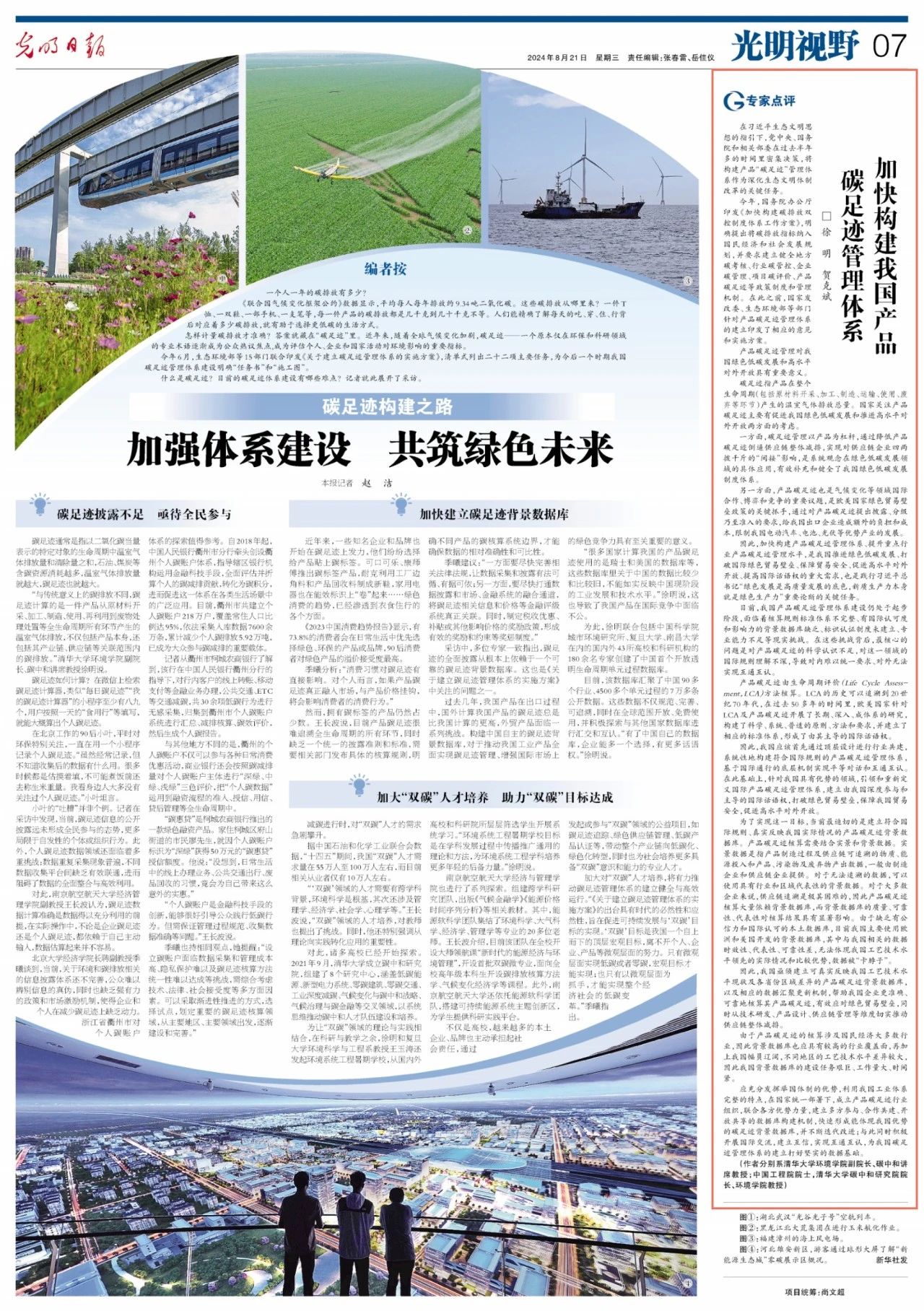 8月21日,《光明日报》就我国碳足迹管理体系建设相关问题进行专题报道,并刊发High漫画 徐明教授、贺克斌院士的专家点评文章。文章针对产品碳足迹管理的重要意义、我国产品碳足迹管理体系建设目前面临的挑战及相关建议进行了详细阐述。以下为点评文章全文。