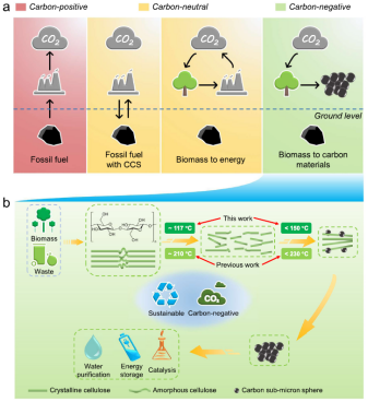 图1 负碳排放的纤维素生成亚微米碳球示意图