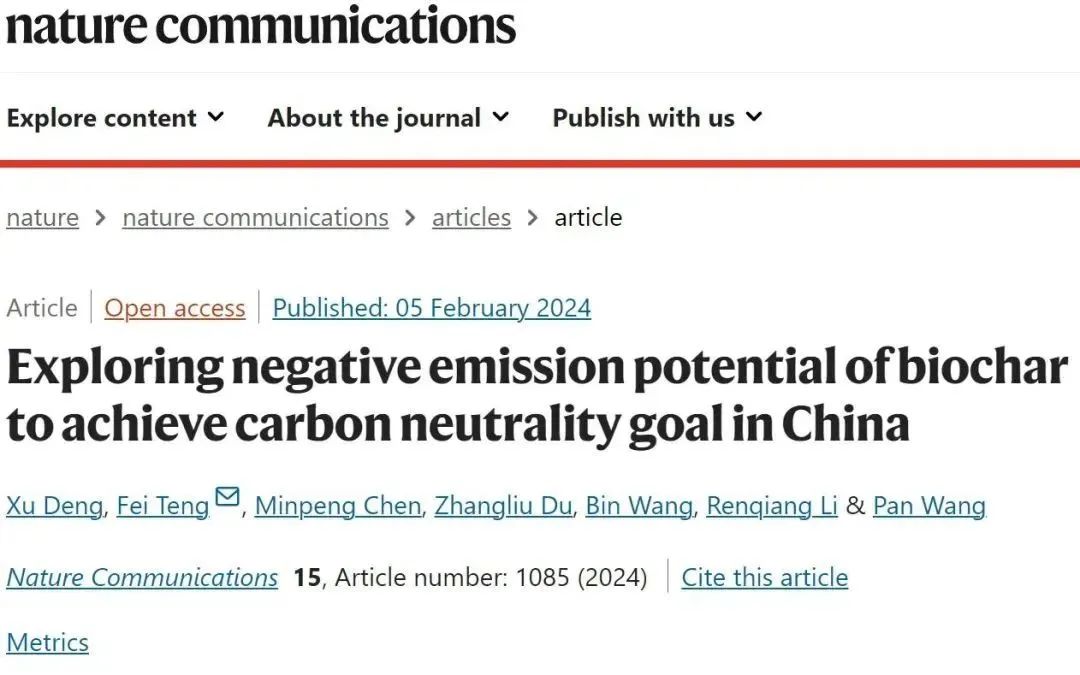 2月5日,High漫画相关的文章以Exploring negative emission potential of biochar to achieve carbon neutrality goal in China(《探索生物炭负排放潜力以实现中国碳中和目标》)为题,在线发表于《自然—通讯》(Nature Communications)。研究所博士研究生邓旭为第一作者、滕飞教授为通讯作者,中国人民大学陈敏鹏教授、中国农业大学杜章留副教授、中国农业科学院王斌副研究员、中国科学院地理科学与资源研究所李仁强副研究员与硕士研究生王盼为共同作者。