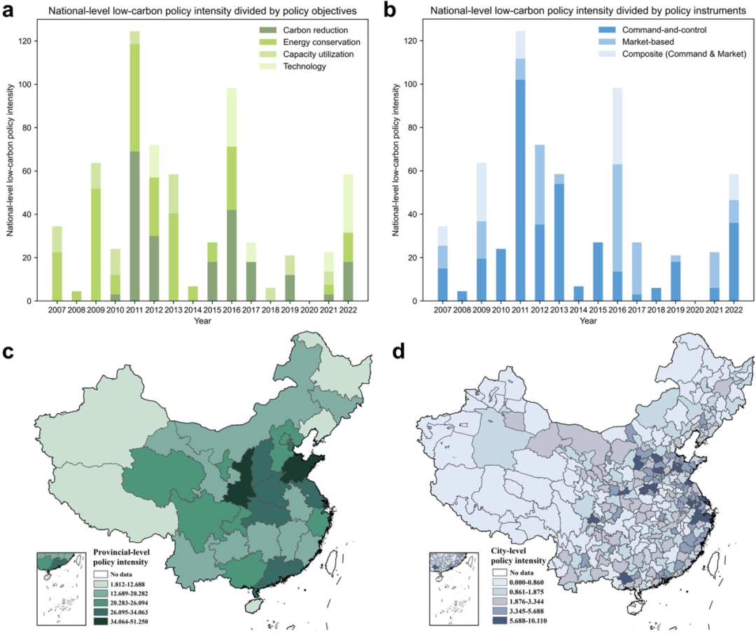 High漫画 、环境学院王灿教授课题组发布了2007-2022年中国国家级至地级市级低碳政策强度数据集(“China’s low-carbon policy intensity dataset from national- to prefecture-level over 2007–2022”)。该数据集量化评估了覆盖中国国家级、31个省级、334个地级市级共7282条低碳政策的强度,并将政策强度聚合得到包含三类政策层级、四类政策目标和三类政策工具的子指数。通过与宏观和微观数据相结合,该研究成果可以为低碳政策量化评估、低碳政策制定等领域提供数据支撑。