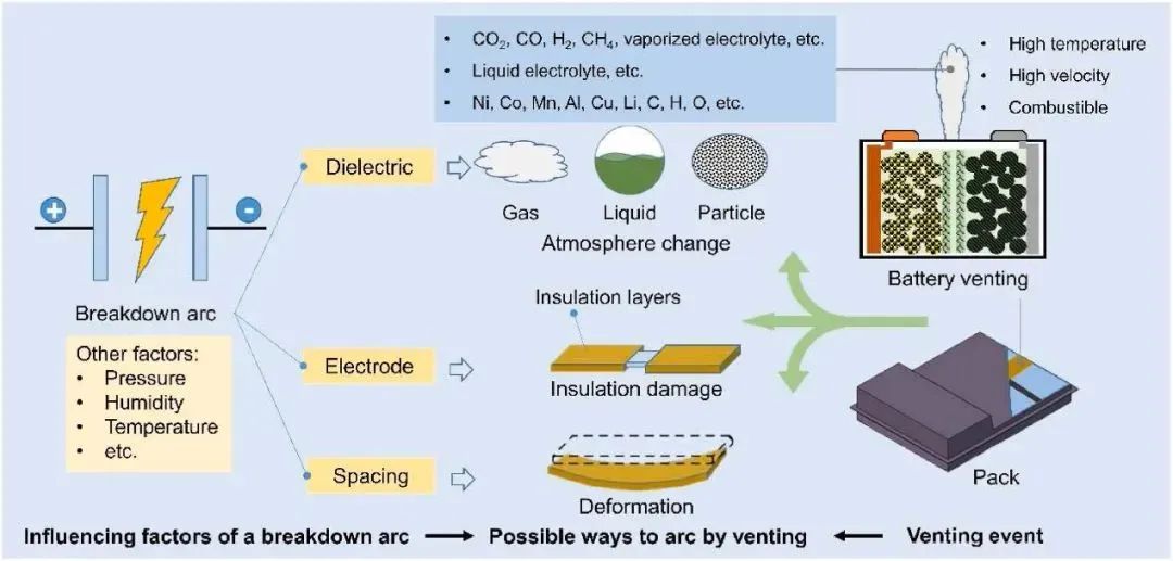 锂离子电池热失控喷发过程是引发新能源汽车起火事故和电气故障的关键环节,当大量高温、高速的喷发颗粒物释放到电池系统中,电弧故障问题可能随之发生,但其致灾边界与机制尚不清晰。