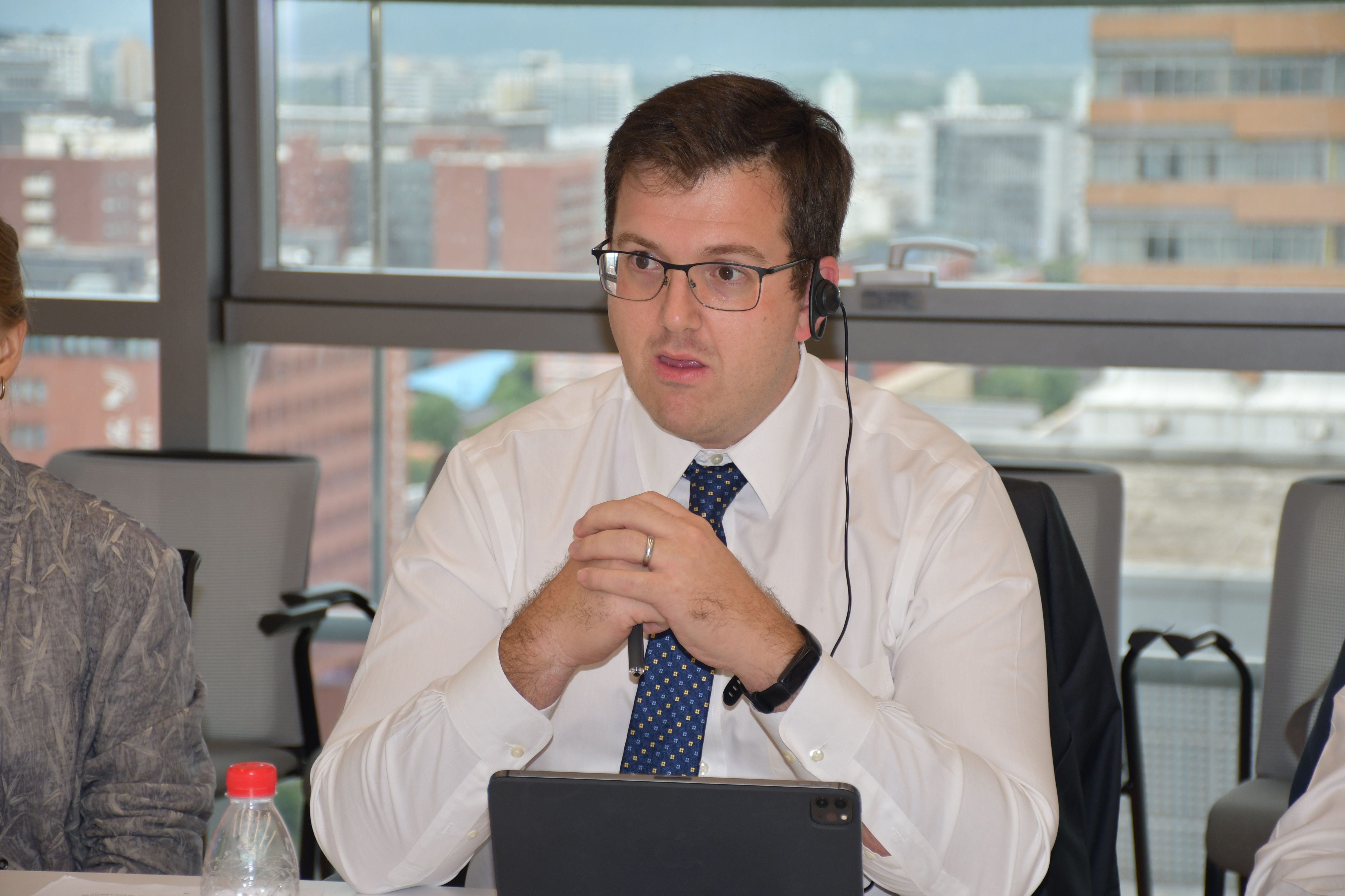王哲与韦山大分别代表中英双方致辞。王哲简要介绍了清华碳中和院,并表示期待未来能与英国气候变化委员会和英国驻华使馆加强交流与合作。韦山大介绍了英国气候变化委员会的性质和职能,并提到英国新一届政府提出了包括大力发展清洁能源在内的五大使命,希望未来加强国际交流合作。