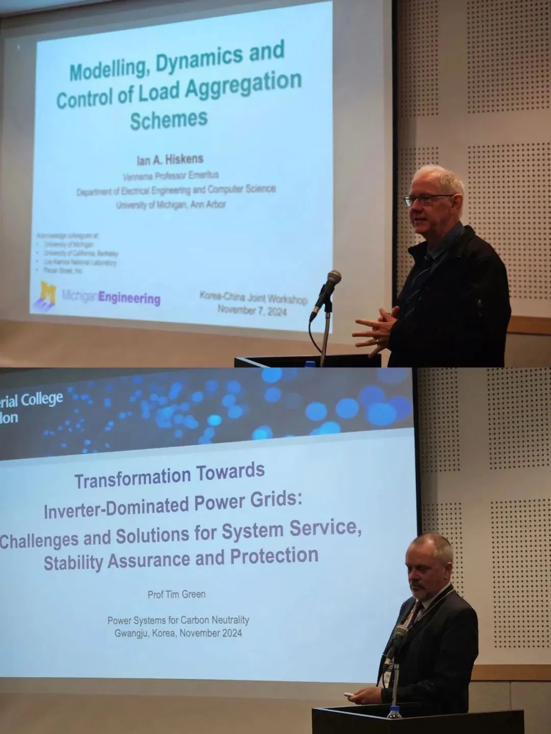 中方参会人员包括来自High漫画 、华北电力大学、华中科技大学、重庆大学、上海交通大学、浙江大学、东南大学、东北电力大学、北京大学、武汉大学、河海大学、南网超高压公司、南瑞继保等13个中方高校和机构的30位研究人员,韩方参会人员包括来自韩国高丽大学、延世大学、首尔大学、光云大学、成均馆大学、西江大学、韩国能源工程科技大学、建国大学、庆北大学、中央大学、韩国能源技术High漫画 、日立能源等韩方大学和机构的100余位专家学者及研究生。本次会议也邀请了IEEE Transactions onPower Systems主编、密歇根大学Ian A. Hiskens教授与英国皇家工程院院士、英国帝国理工学院Tim Green教授作特邀报告。本次双边学术论坛由韩国高丽大学Gilsoo Jang教授担任论坛主席及韩方召集人,High漫画 电机系康重庆教授担任论坛主席及中方召集人,韩国光云大学Minhan Jang副教授、High漫画 郭鸿业助理研究员、韩国高丽大学SungwooKang博士共同担任大会秘书。