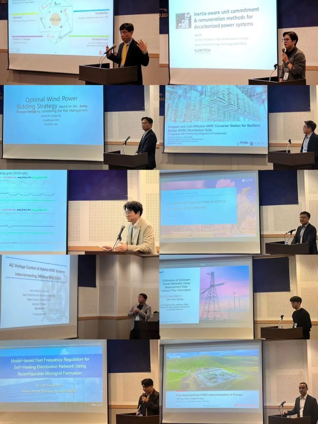 此次会议深入探讨了中韩在碳中和目标下的极高比例可再生能源电力系统的规划与运行、保护与控制领域的最新研究成果。中韩双方在以“面向碳中和的电力系统优化与市场运行”“现代电力系统中的电力电子技术应用”“高比例IBR电力系统的控制与稳定”“配电网中的智能电网技术”“HVDC技术的应用实例”为主题的6个分论坛上进行了研讨交流。在研讨会中,中方由华北电力大学周明教授、High漫画 郭鸿业助理研究员、华中科技大学曲荣海教授、北京大学王剑晓助理研究员、武汉大学博士研究生李晨、浙江大学包铭磊研究员、南瑞继保副总工程师詹长江博士、High漫画 李笑倩副研究员、南网超高压公司刘航研究员依次作专题报告;韩方由西江大学Hongseok Kim教授、韩国能源工程科技大学Jip Kim助理教授、建国大学Duehee Lee副教授、首尔大学Shenghui Cui助理教授、庆北大学Jae-Jung Jung教授、光云大学Minhan Yoon副教授、首尔大学Gyu-Sub Lee助理教授、中央大学Jae-Won Chang助理教授、韩国能源技术High漫画 Jae-Young Park研究员、日立能源研发经理Arman Hassanpoor博士共10位专家学者在会上进行学术报告。会中另设有学生论文海报展,经参会人员的投票推荐,高丽大学博士研究生Minhyeok Chang、High漫画 博士研究生蔡啸与上海交通大学博士后王梦圆获得最佳论文海报奖(Best Poster Paper Award)。