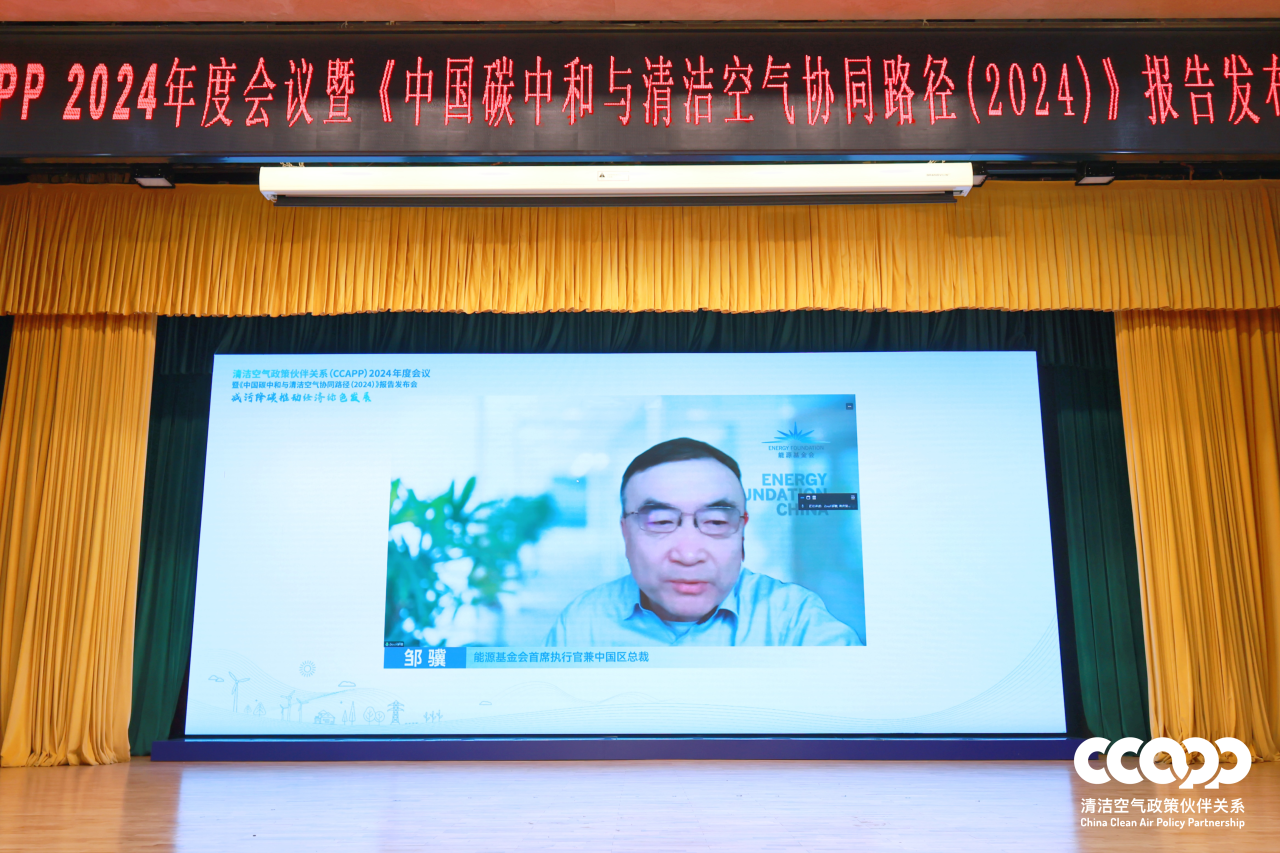能源基金会首席执行官兼中国区总裁邹骥在致辞中表示,中国正处“十四五”收官和“十五五”筹划的关键时期,同时正在制定包括全口径温室气体在内的第二期国家自主贡献目标(NDC)。希望CCAPP在推进以下两方面工作中发挥更大作用:一是如何将减污降碳的战略规划、目标制定、技术选择、管理措施等进行全方位有机融合,并综合考虑大气污染物与温室气体协同减排;二是从工程技术上继续推动四大结构转型升级迈上新台阶,尤其是进一步推动可再生能源和电动车发展。