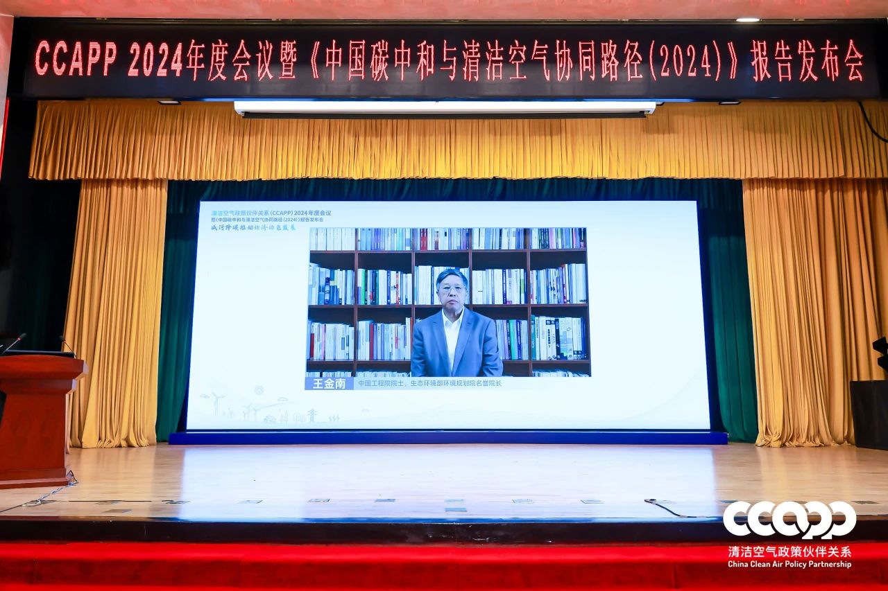 上午的最后一个环节,CCAPP年度报告《中国碳中和与清洁空气协同路径(2024)》正式发布。尹志聪教授代表报告工作组介绍报告主要内容。2024年度报告是系列报告第四期,以“减污降碳推动经济绿色发展”为主题,在往年报告的基础上进一步完善了协同治理监测指标体系,报告更新了气候变化与极端天气气候、大气中的温室气体、污染去除技术提质增效等指标。并通过追踪各项指标的进展、对比国内外发展情况、结合地方实践经验,分析中国在碳中和与清洁空气协同道路上面临的挑战并提出解决思路。