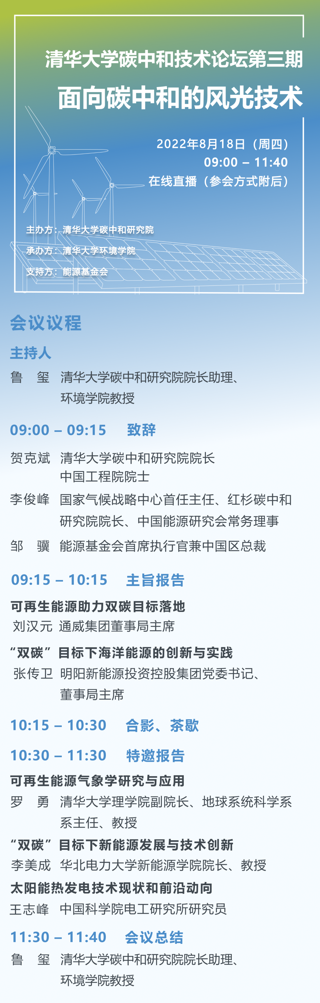 碳中和技术论坛——面向碳中和的风光技术,展望风光技术发展路径、研讨其发展过程中的关键问题。