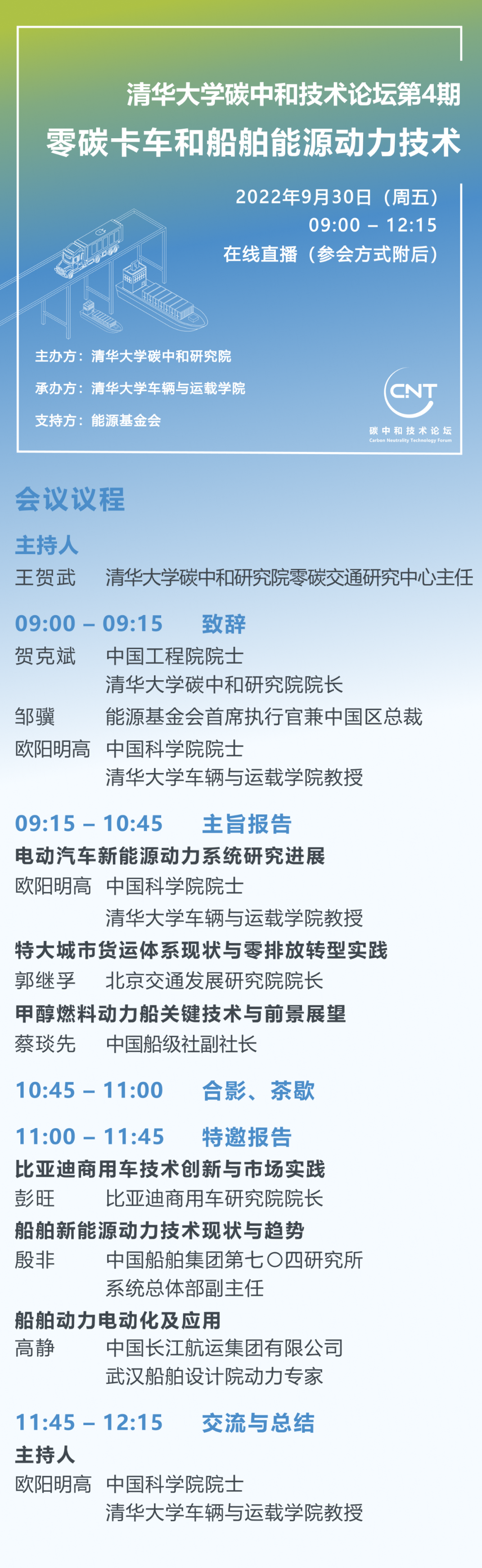 碳中和技术论坛——“零碳卡车和船舶能源动力技术”,研讨其发展过程中的关键问题。