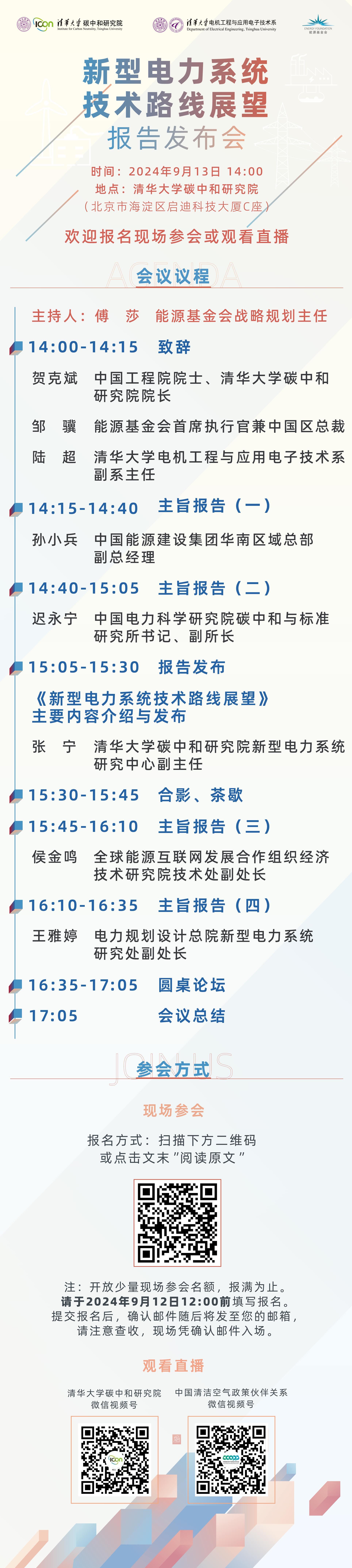 “碳中和技术研讨会”的系列会议之一,邀请行业内权威专家共同探讨面向碳达峰碳中和目标的新型电力系统建设,并对研究报告批评指正。