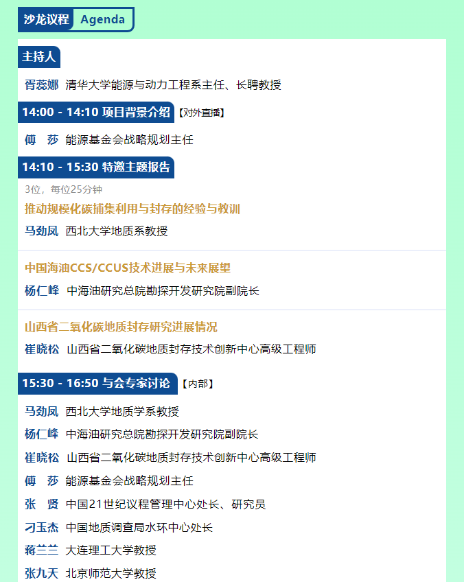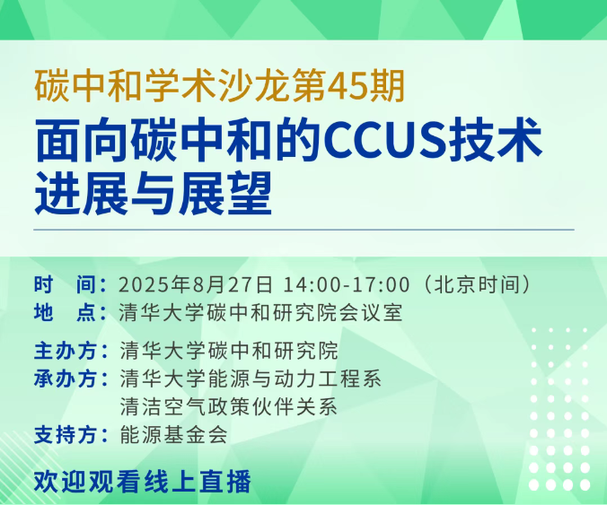 碳捕集、利用与封存(CCUS)技术作为实现碳中和目标的重要突破口,承担着推动我国低碳转型和绿色发展的关键使命。随着“双碳”战略的深入推进,CCUS技术的技术进展与应用前景日益受到国内外高度关注。本次学术沙龙以“面向碳中和的CCUS技术进展与展望”为主题,旨在聚焦CCUS关键技术创新、应用难点及未来发展趋势,推动前沿科学问题的交流与合作,助力解决碳减排中的核心技术瓶颈。通过汇聚产学研各方力量,本次沙龙将为加快CCUS技术推广应用、推动绿色低碳技术攻关提供重要智力支持和技术指导,助力实现生态文明建设与碳中和目标的深度融合。兹定于2025年08月27日(周三)下午召开第45期碳中和学术沙龙——面向碳中和的CCUS技术进展与展望,研讨CCUS技术发展路径及其发展过程中的关键问题。