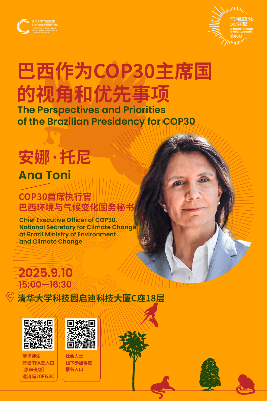 即将于2025年11月在巴西贝伦召开的联合国气候变化大会COP30被认为是“不能再失败的一届大会”,“从承诺走向落实的历史转折点”。巴西希望以亚马孙为起点,向世界证明:南方国家不仅是气候危机的受损害者,更是解决方案的引领者。本期大讲堂邀请COP30首席执行官、巴西国家气候变化秘书安娜·托尼,发表主题为“巴西作为COP30主席国的视角和优先事项”的演讲,围绕多边主义、森林融资、全球南方合作、NDC雄心和执行机制五大支柱,阐释巴西作为COP30作为主席国,如何推动全球气候治理进入“行动优先”的新阶段。