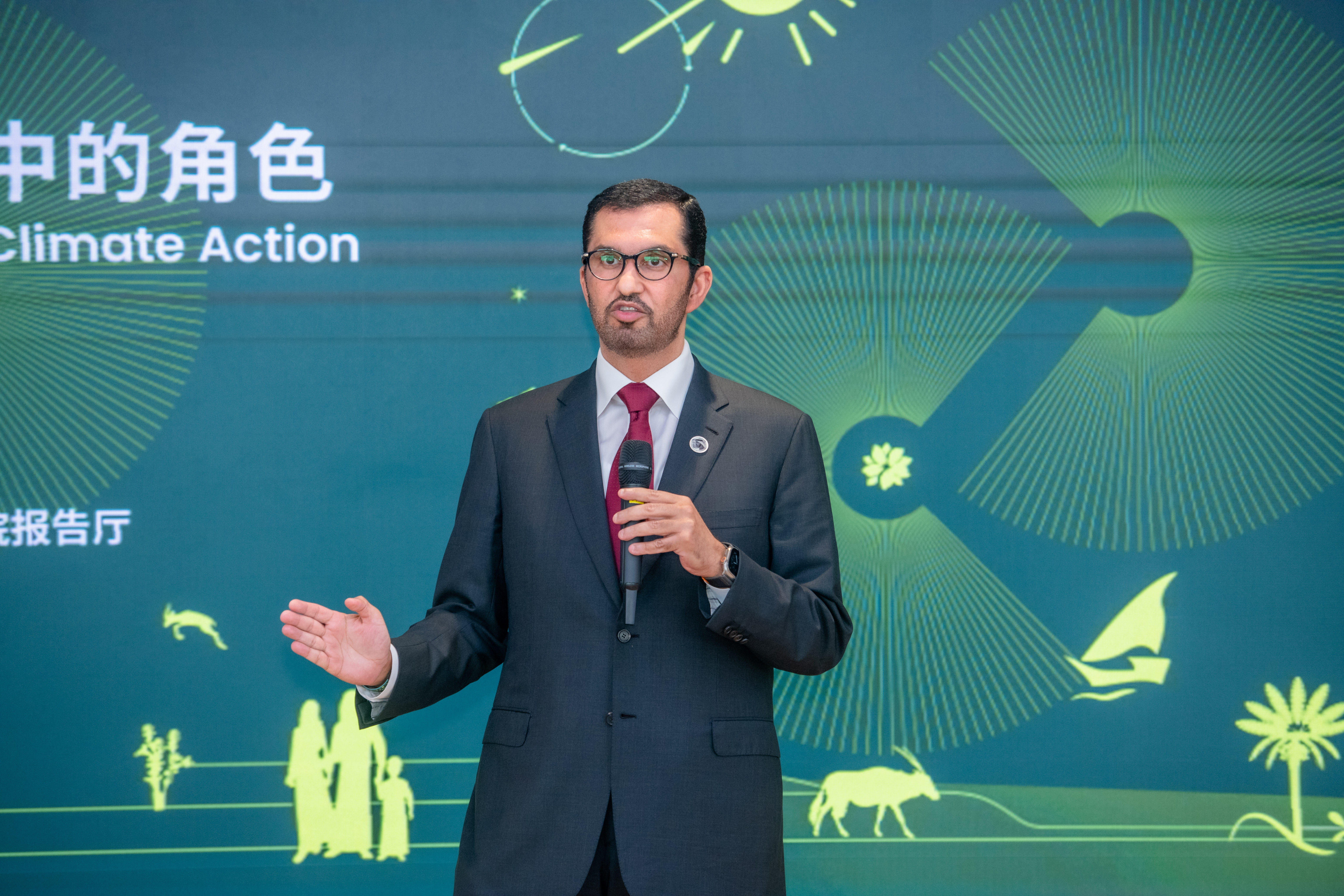 随后,贾比尔作了题为“青年在气候行动中的角色”的演讲。他首先阐述了当前全球碳减排路径转型的急迫性。他表示,为了实现《巴黎协定》的目标,我们必须在未来7年内减少43%的碳排放,同时还要满足全球不断增长的能源需求。这就要求我们必须改变现状、修正路径、建立全球伙伴关系、制定全面行动计划。他盛赞中国在可再生能源方面的部署,同时介绍了阿联酋可再生能源发展情况及与中国企业的合作。