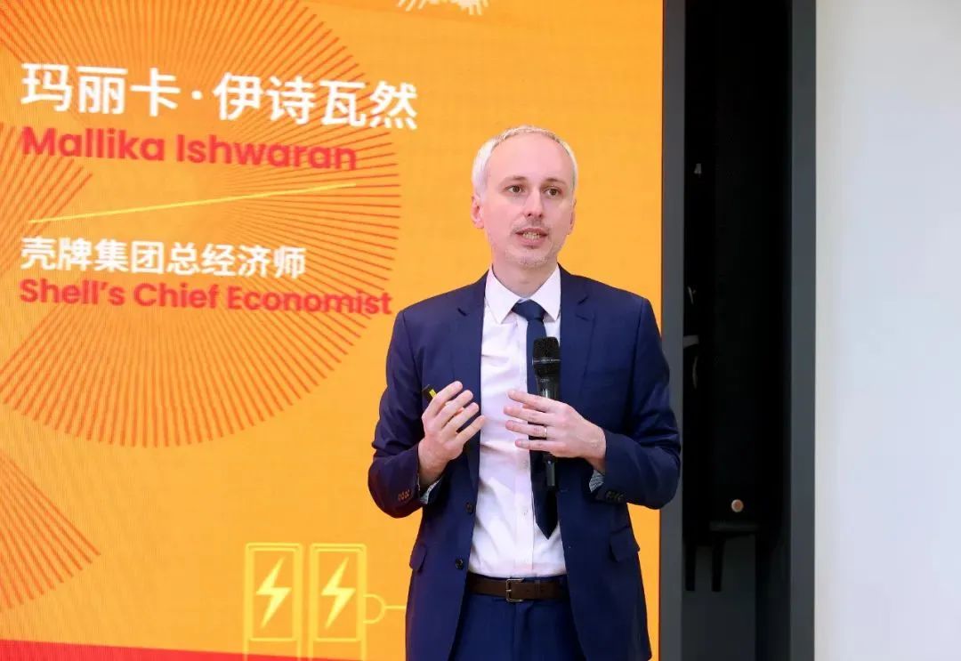 随后,玛丽卡邀请壳牌全球战略部高级能源分析师Georgios Bonias具体介绍两种情景, 分析两种能源安全情景下全球能源转型在电气化率、可再生能源增长、新型燃料、一次能源需求等方面的差异。虽然两种情景下全球能源转型路径在各方面均有所不同,但低碳发展乃至实现零碳排放是两种情景中均存在的必然趋势。最后,玛丽卡总结未来全球应对气候变化仍有很多工作需要进行,制定政策框架、投资基础设施建设、推动气候融资等,想要实现能源转型中的良性循环仍要依靠全球积极通力合作。